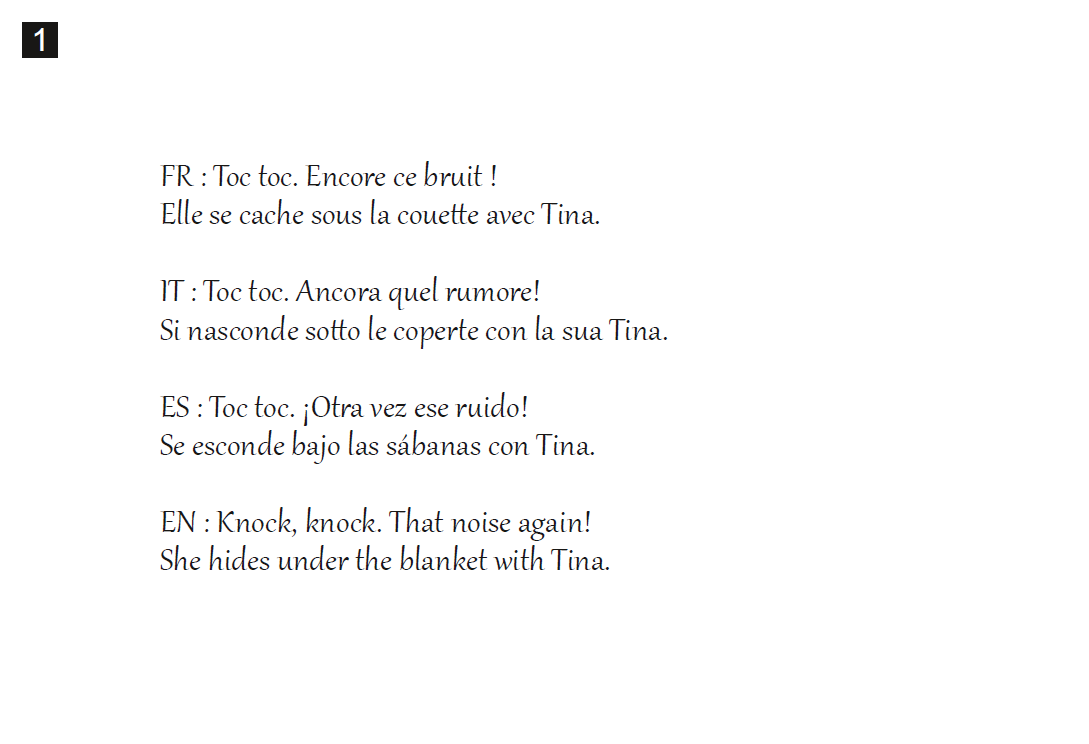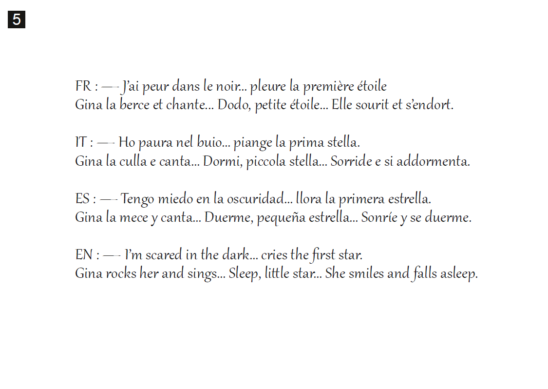 Chaque planche correspond à une scène racontée à voix haute.
